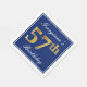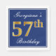 This simple and elegant paper napkin design features a message like "Georgiana’s 57th Birthday" (with the "57th" having a faux gold-like colouring) within a blue-coloured square area featuring a simple border outline. The name is in white-coloured script-like text, and can be personalised. Napkins like these could perhaps be used at a birthday party for somebody who is celebrating their fifty seventh birthday. [~Z0000141]