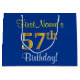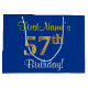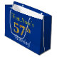 Elegant, Blue, Faux Gold 57th Birthday + Name Large Gift Bag