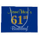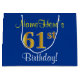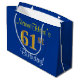 Elegant, Blue, Faux Gold 61st Birthday + Name Large Gift Bag