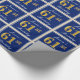 This simple and elegant wrapping paper design features a personalised message like "Jessica’s 61st Birthday" (with the "61st" having a faux/imitation gold-like colouring look) within a blue-coloured square area featuring a simple border outline. The name is in an elegant white-coloured script-like text, and can be personalised. Wrapping paper like this could perhaps be used when wrapping birthday gifts for somebody who is celebrating their sixty first birthday. [~Z0000221]