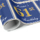 Elegant, Blue, Faux Gold 61st Birthday + Name Wrapping Paper