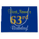 Elegant, Blue, Faux Gold 63rd Birthday + Name Large Gift Bag