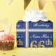 This simple and elegant wrapping paper design features a personalised message like "Name-Here’s 66th Birthday" (with the "66th" having a faux/imitation gold-like colouring look) within a blue-coloured square area featuring a simple border outline. The name is in an elegant white-coloured script-like text, and can be personalised. Wrapping paper like this could perhaps be used when wrapping birthday gifts for somebody who is celebrating their sixty sixth birthday. [~Z0000221]