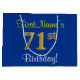 Elegant, Blue, Faux Gold 71st Birthday + Name Large Gift Bag