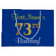 Elegant, Blue, Faux Gold 73rd Birthday + Name Large Gift Bag
