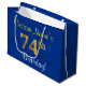 Elegant, Blue, Faux Gold 74th Birthday + Name Large Gift Bag