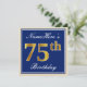 Elegant, Blue, Faux Gold 75th Birthday + Name Invitation