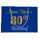 Elegant, Blue, Faux Gold 80th Birthday + Name Large Gift Bag