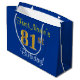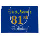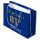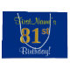 Elegant, Blue, Faux Gold 81st Birthday + Name Large Gift Bag