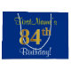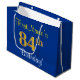 Elegant, Blue, Faux Gold 84th Birthday + Name Large Gift Bag