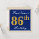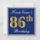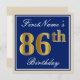 Elegant, Blue, Faux Gold 86th Birthday + Name Invitation