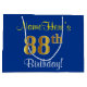 Elegant, Blue, Faux Gold 88th Birthday + Name Large Gift Bag