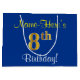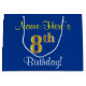 Elegant, Blue, Faux Gold 8th Birthday; Custom Name Large Gift Bag