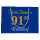 Elegant, Blue, Faux Gold 91st Birthday + Name Large Gift Bag