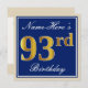 Elegant, Blue, Faux Gold 93rd Birthday + Name Invitation