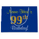 Elegant, Blue, Faux Gold 99th Birthday + Name Large Gift Bag