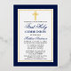 Elegant Navy Blue and Gold First Holy Communion Invitation with Cross. Gold Foil Frame. Gold Foil Cross.