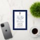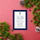 Elegant Navy Blue and Silver First Holy Communion Invitation with Cross. Silver Foil Frame. Silver Foil Cross.