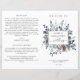 This elegant wedding ceremony design features a captivating blue floral bouquet on the centre encasing bride and groom's names. Foliage and flowers in dusty blue, navy blue, white, sage, grey and caramel tones. Use of hand written typography. Personalise the wording in both sides. NOTE: this programs arrive flat and require folding down the middle to assemble. The default value paper is recommended. Part of our"Rustic Blue Mountains" wedding and events collection.