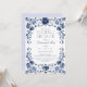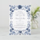 Host a timeless celebration with this elegant blue floral bridal shower invitation, designed with a classic porcelain-style frame and delicate botanical flourishes. The refined navy and dusty blue palette is perfect for a formal shower or “something blue” bridal theme.