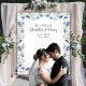 Elegant Blue Floral Frame Wedding Photo Backdrop Tapestry