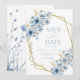 Elegant Blue Floral Geometric Frame Bloom Wedding Save The Date