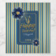 Elegant Blue Floral Gold Stripe Happy Birthday Wine Label