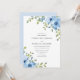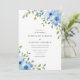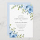 Beautiful blue watercolor flowers and greenery decorate this elegant floral wedding invitation. Use the online template tools to change the font style, color and background to any of your choice.