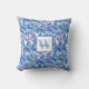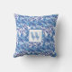 Elegant blue floral throw pillow with monogram. Pretty summer floral watercolor pattern will brighten any room. Easy to change the monogram and name from the product page.