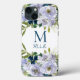 Elegant Blue Floral Monogram Name Case-Mate iPhone Case