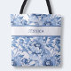 Elegant Blue Floral Pattern Cute Botanical Flowers Tote Bag