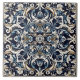 A captivating arrangement of intricately designed tiles features swirling floral motifs and ornate details in deep blue and creamy beige hues. This artistic composition brings a touch of sophistication and warmth, perfect for enhancing any space.