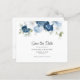 Elegant floral watercolor dusty blue, white, and navy floral bouquet wedding save the date with QR code card. The card features a script "Save the Date", that can be changed to a font type of your choice that are available here when you click the "Personalise" button. Add your wedding website and QR Code on the reverse side so your guests can keep up do date with your plans