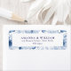 A sophisticated return address label featuring a blue floral border and elegant typography. Perfect for wedding invitations, thank-you cards, and special event mailings. A stylish and personalised touch to your correspondence.