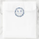 This elegant wedding sticker features a classic toile design with densely packed blue flowers and green leaves on an off-white background, creating a timeless and sophisticated look. The central circular element showcases bold serif typography with initials "L" and "B," accompanied by the phrase "THANK YOU" in uppercase letters, conveying gratitude and celebration. The intricate floral motifs, including stylized peonies and foliage, are depicted in a realistic yet decorative manner, enhancing the overall visual harmony. Perfect for acknowledging guests at your special event, this design exudes a polished and appreciative tone, making it ideal for weddings or formal occasions.