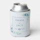 This elegant blue floral wedding can cooler design showcases soft watercolour blooms and greenery framing refined serif typography on a pale background. Ideal for keeping drinks chilled at your reception, hen do, or engagement party, it coordinates perfectly with matching blue wedding stationery. The romantic botanical artwork and cool tones suit coastal, garden, and modern celebrations.