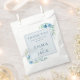 Enhance your celebration with this beautifully refined wedding favour bag, adorned with a charming arrangement of soft watercolor blue flowers set within a romantic, botanical-inspired frame. The delicate design features sophisticated serif typography and gentle pastel blue tones, creating a timeless, graceful impression. Perfectly suited for elegant spring gatherings, garden-themed events, or nature-inspired receptions, this favour bag is ideal for presenting small gifts or sweet treats to your guests. The clean, minimalist composition offers a fresh, modern accent while the classic floral theme conveys heartfelt gratitude making every guest feel truly appreciated and ensuring your special day is both memorable and stylish.