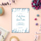 Celebrate the wedding with this elegant blue floral bridal shower invitation! Featuring delicate hanging blue flowers on a soft white background, this design exudes sophistication and charm. The stylish script font highlights key details, making it a perfect choice for a classy and timeless celebration. Fully customisable to match your event details, this invitation sets the perfect tone for a memorable gathering.