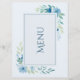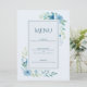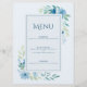 Elegant Blue Floral Wedding Menu Card