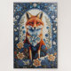 Elegant Blue Floral William Morris Inspired Fox Jigsaw Puzzle