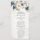 Custom wedding program with elegant dark blue and cream watercolor flowers and winter greenery. Customize these order of ceremony cards with your own text.