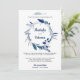 Invite your guests with this elegant wedding invitation featuring a beautiful blue wreath against a white background. Simply add your event details on this easy-to-use template to make it a one-of-a-kind invitation. Flip the card over to reveal a blue and white dots pattern on the back of the card.