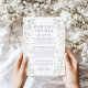Immerse yourself in modern sophistication with this contemporary watercolor details card crafted for rustic weddings. The card elegantly displays a delicate wreath intertwined with blue flower blooms. Personalise your experience with the inclusion of the bride and groom's monogram on the back for a truly unique touch.