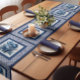 Elegant Blue flowers chinoiserie toile monogram Short Table Runner