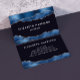 Elegant and modern professional business card that features shimmery blue foil edged in gold faux glitter against a black background. Your name and details are in simple white gold typography.