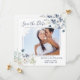 Elegant Blue Foliage PHOTO Wedding Save the Date