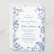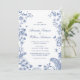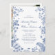 Elegant Blue French Garden Wedding Photo QR code Invitation