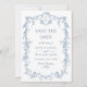 Elegant Blue French Toile Floral Wedding QR code Save The Date