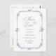 Elegant Vintage Blue French Garden Floral Wedding Save the Date Postcard.