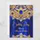 Elegant Blue Gems Gold Lace Damask Birthday Party Invitation